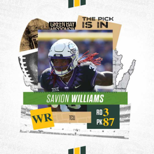 GREEN BAY – The Packers took a second receiver within their first three picks of this draft. Green Bay chose TCU’s Savion Williams in the third round Friday night with…