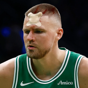 Bloodied Kristaps Porzingis exits Game 2 with forehead gash after Flagrant 1 foul