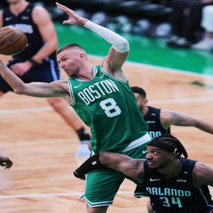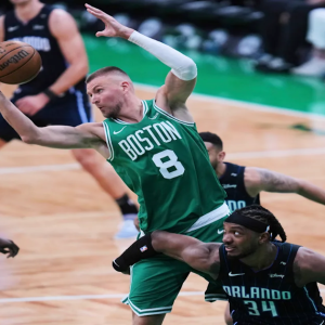 Celtics’ Kristaps Porzingis hit in head, gushes blood, returns to shoot free throws vs. Magic