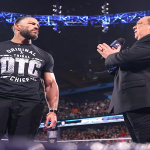 ROSEMONT, ILLINOIS – APRIL 4: Roman Reigns and Paul Heyman speak during SmackDown at Allstate Arena … More on April 4, 2025 in Rosemont, Illinois. (Photo by Eric Johnson/WWE via…