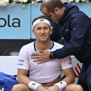 May 2, 2025, 05:14 PM ET MADRID — With the help of painkillers, Casper Ruud overcame a rib ailment to defeat Francisco Cerundolo in straight sets and reach the Madrid…