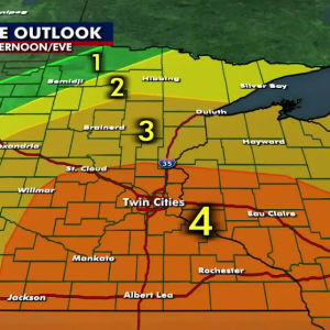 MINNEAPOLIS (FOX 9) – There are two waves of storms expected on Monday, with a moderate (level 4 of 5) risk of severe weather in the afternoon and evening, including…