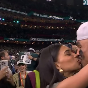 Jalen Hurts and Fiancée Bry Burrows Kiss on Field After He’s Named 2025 Super Bowl MVP for Eagles Win