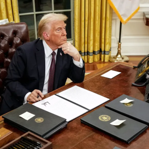 In his executive orders, Trump repeatedly asserted that he can make and interpret law, alongside Congress and the courts. January 22, 2025 Photograph by Doug Mills / NYT / Redux…