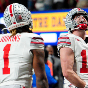 Quinshon Judkins scored three TDs and Will Howard completed his first 13 passes in the Buckeyes’ College Football Playoff national championship game win over Notre Dame. (AP Photo/Jacob Kupferman) Ohio…