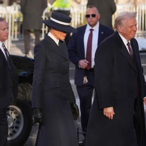 Melania Trump wears navy coat and hat for Inauguration Day church visit