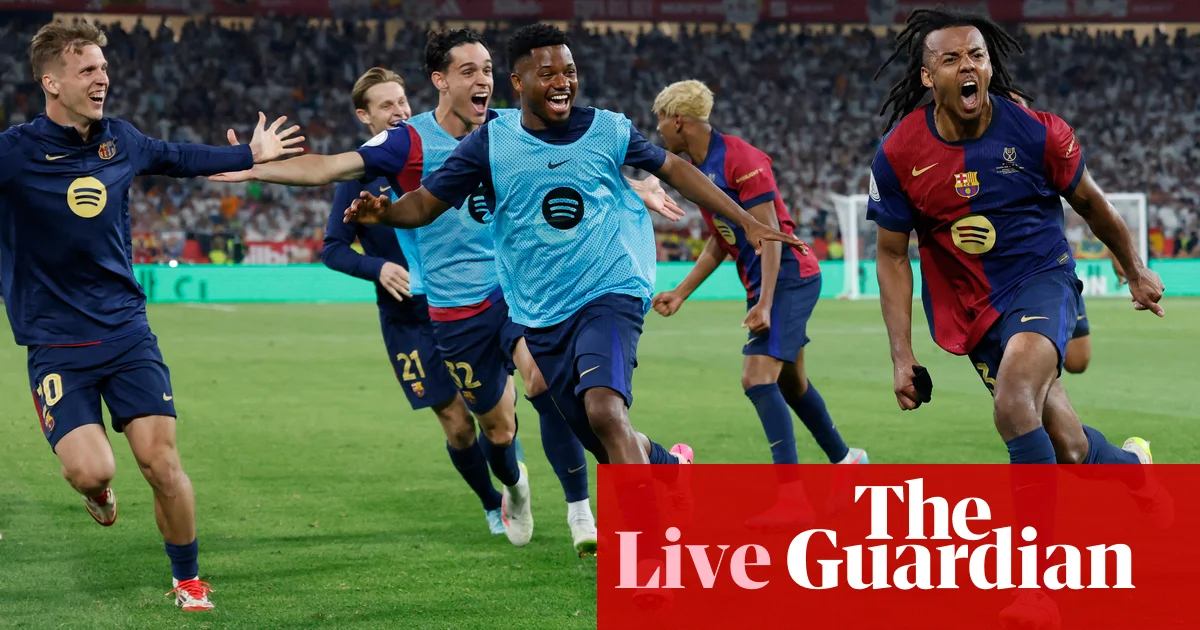 Barcelona hoist the trophy. Sid Lowe’s report is coming up …