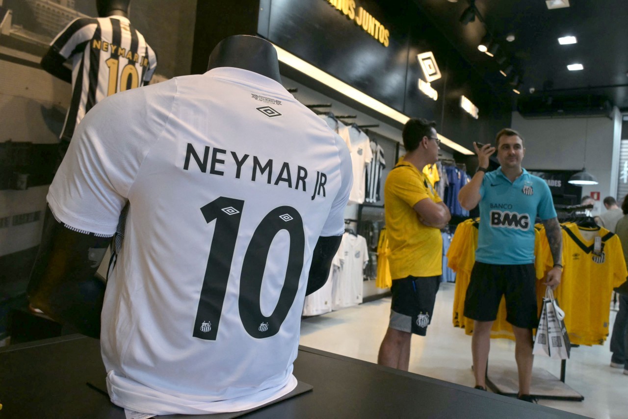 Nova camisa 10 de Neymar no Santos começa a ser vendida — Foto: NELSON ALMEIDA / AFP