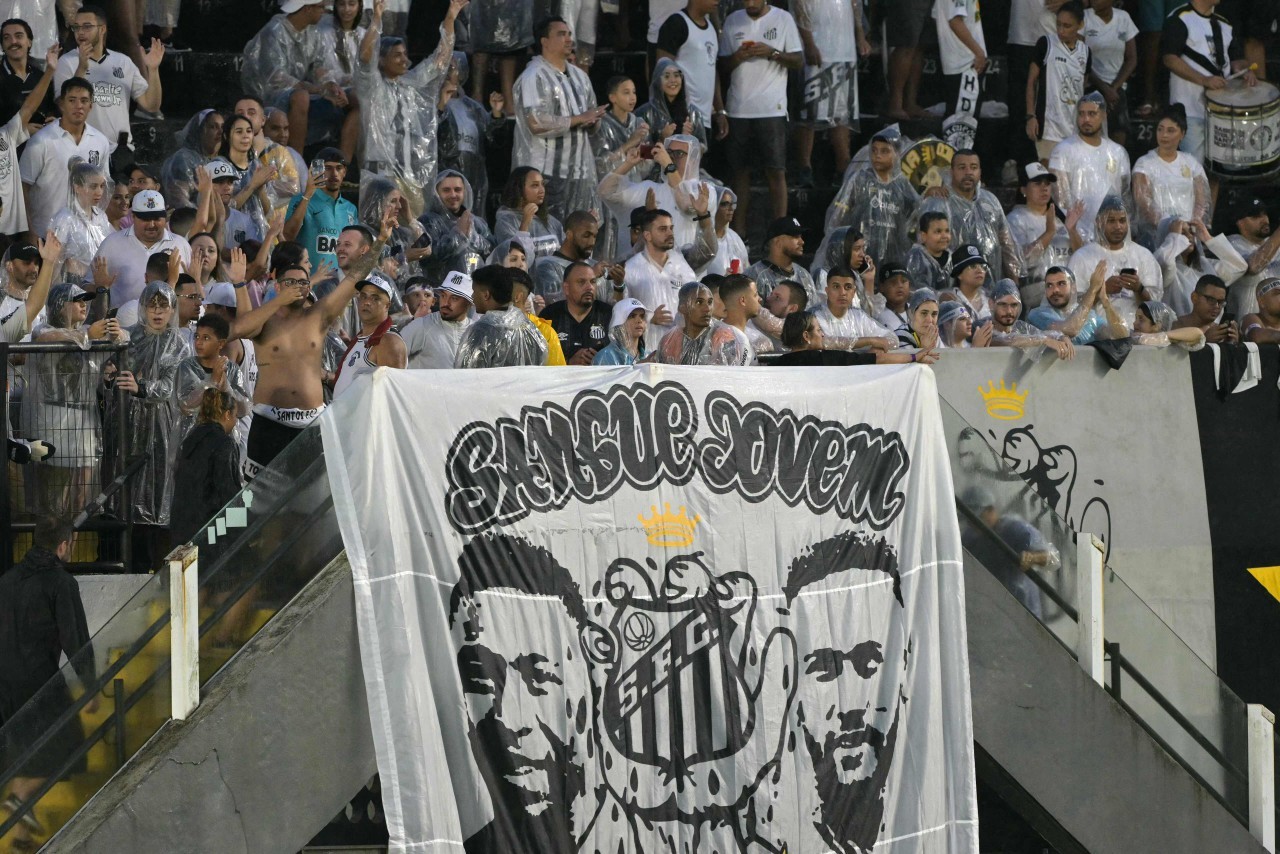 Torcedores festejam volta de Neymar ao Santos — Foto: NELSON ALMEIDA / AFP