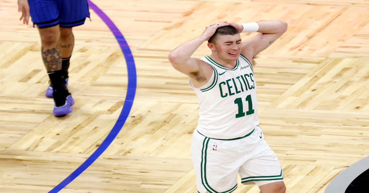 The Magic had the ball with 17 seconds left and 14 on the shot clock, and Wagner’s potential game-clinching 3-pointer was off, but he fired it up just before the shot clock expired and it took a high, favorable bounce, giving the Celtics just 0.3 seconds left when they secured the rebound and called timeout.