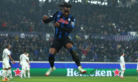 Atalanta’s Ademola Lookman celebrates after scoring his side’s fourth goal against Sturm Graz. Photograph: Michele Maraviglia/EPA