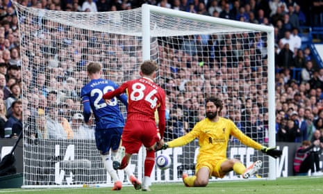 47 min: Madueke, operating on Chelsea’s left wing today, has done his best work when he has come inside Alexander-Arnold, rather than go outside on his favoured left. The Chelsea winger dances past two tackles and squares the ball to Jackson, who shoots weakly at Alisson.