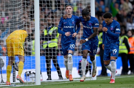 Cole Palmer of Chelsea celebrates scoring. Photograph: Shaun Botterill/Getty Images