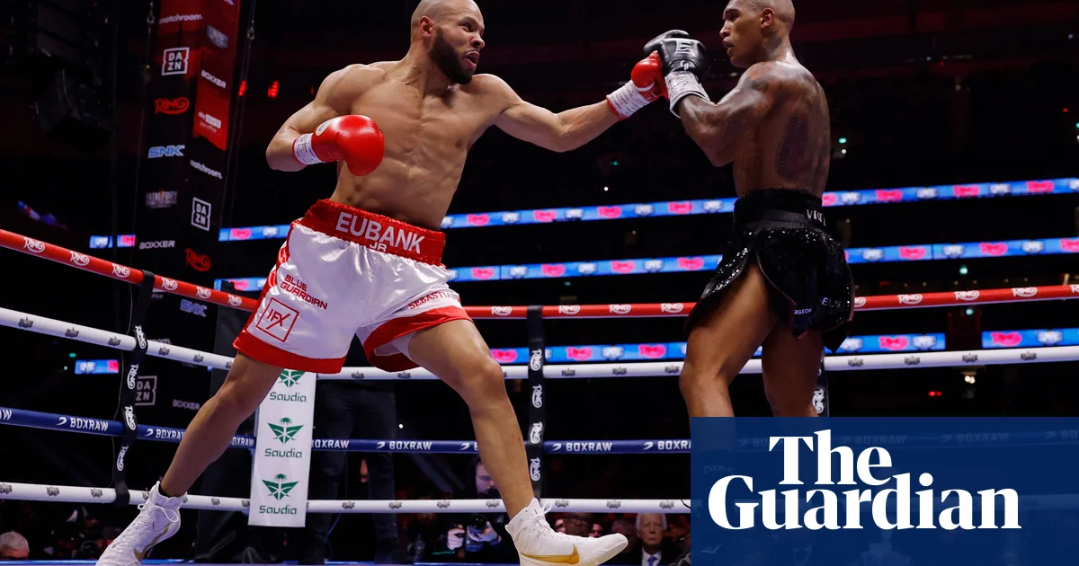 Benn came out swinging, wildly, and the pattern was set. He missed more than he landed but his sheer aggression ensured a tight contest. There were plenty of warnings from the referee to both fighters, for their roughhouse tactics, and constant chatter between Eubank Jr and Benn. There were also moments of real drama. Eubank was hurt in the third but, in the next round, he nailed Benn with a shuddering right uppercut. Chants of “Eu-bank … Eu-bank” echoed around the arena but Benn fought back and they went toe-to-toe in a fierce battle.