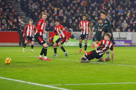 Liverpool’s control became pronounced. Brentford are comfortably the league’s highest scorers at home with 29 goals from their 12 games but Frank’s idea for all-out attack was overtaken by the need to maintain a defensive shape.