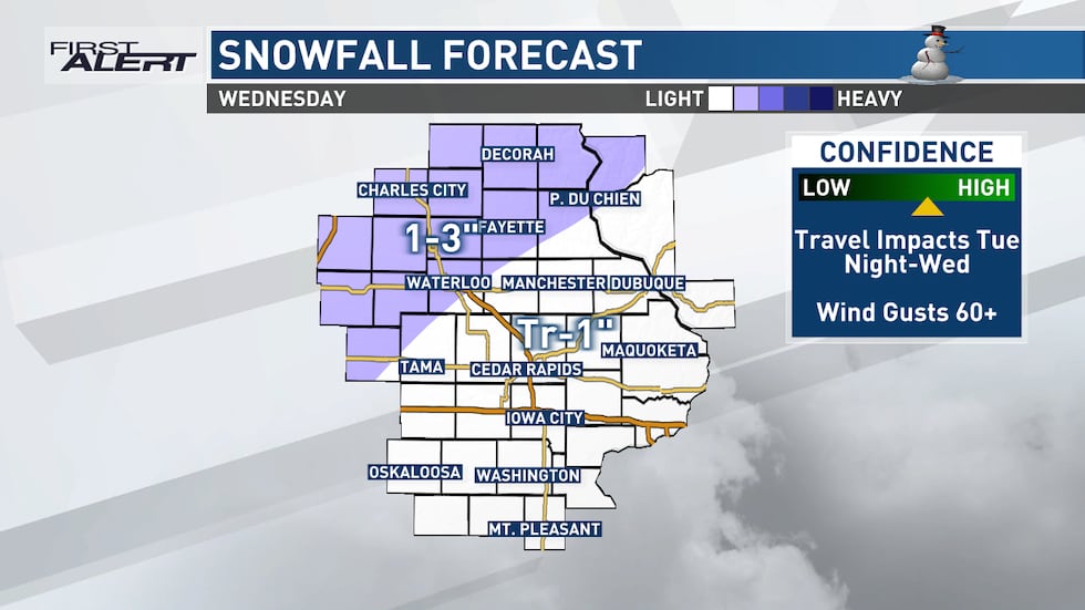 Showers & Storms Today, Snow & Wind Tomorrow(KCRG-TV 9 First Alert Storm Team)