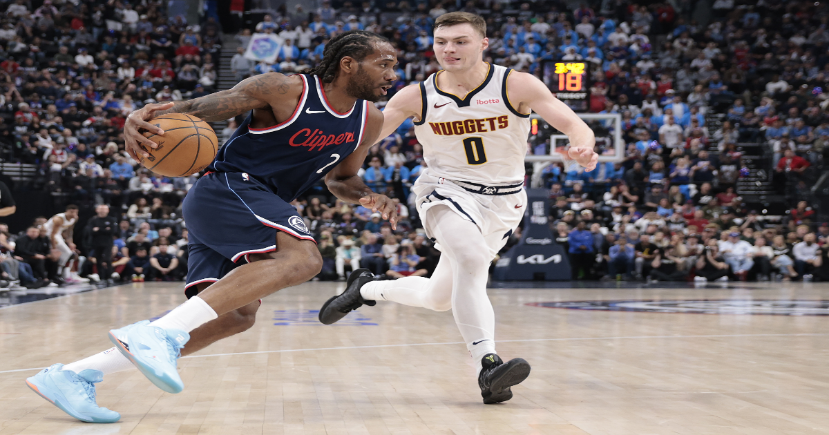 Kawhi Leonard #2 of the Los Angeles Clippers dribbles the ball against Christian Braun #0 of the Denver Nuggets during the second quarter in Game Three of the Western Conference First Round NBA Playoffs at… Kawhi Leonard #2 of the Los Angeles Clippers dribbles the ball against Christian Braun #0 of the Denver Nuggets during the second quarter in Game Three of the Western Conference First Round NBA Playoffs at Intuit Dome on April 24, 2025 in Inglewood, California. Ronald Martinez/Getty Images