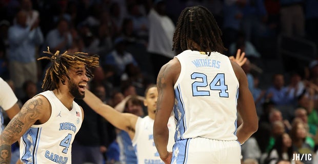 The Tar Heels connected on nine 3-point makes in the game’s first 14 minutes, with Jae’Lyn Wither burying an effectively unconscious 5-for-6 beyond the arc during that stretch. Withers had produced 15 points by halftime, and he was feeling it here in his hometown, blowing kisses at times and raising his index finger to his lips at others.