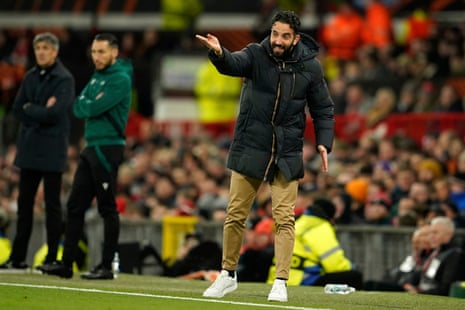 Ruben Amorim is getting a tune out of his forward line tonight. Ish. Photograph: Dave Thompson/AP