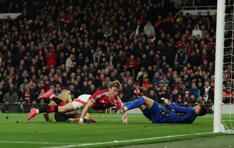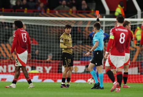 38 min Excellent from Casemiro, flicking up to himself before finding Fernandes, whose lovely touch allows hi to set Garnacho away … but Elustondo makes a good challenge.