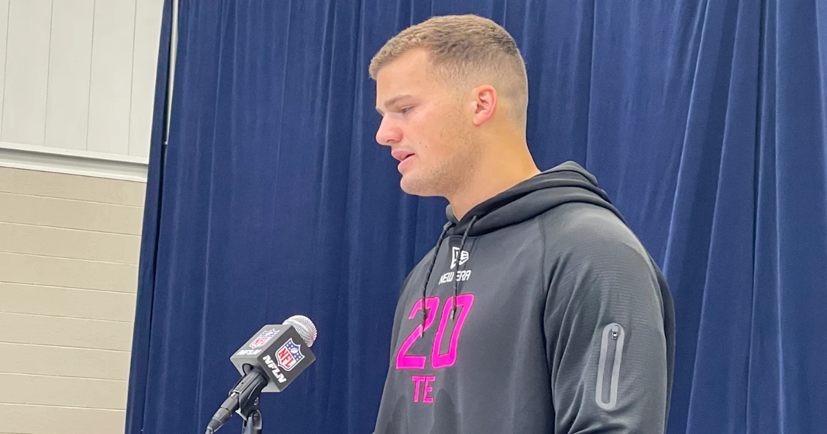 Mason Taylor speaking at the 2025 NFL scouting combine / Alain Poupart – Miami Dolphins On SI