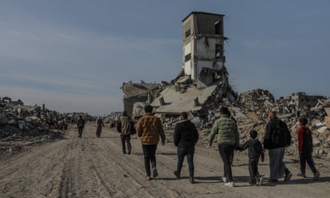 Displaced Palestinians, taking refuge in southern parts, start to return their homes after the announcement of ceasefire and hostage-prisoner swap deal between Hamas and Israel in Gaza City, Gaza on January 19, 2025. Photograph: Anadolu/Getty Images