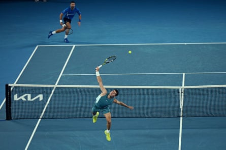 With 16 years separating Djokovic and Alcaraz, their contests over the past two years have illustrated the changing complexions of their careers. While their first meeting occurred when Djokovic was No 1 and Alcaraz had only just broken into the top 10, Alcaraz is now an established four-time grand-slam champion and, as the third seed, this was his section of the draw. Djokovic entered the match a clear challenger and underdog as he tried hard to hold off Alcaraz.