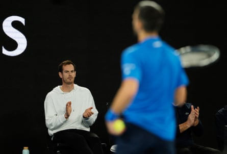 Andy Murray, coach of Novak Djokovic, applauds his efforts against Carlos Alcaraz. Photograph: Francis Mascarenhas/Reuters