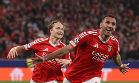 Substitute Eric García then equalised with a towering header from a fine Pedri cross three minutes from time. Benfica pushed for a winner and sparked a melee in the Barça box, but a long ball downfield found Raphinha who picked his spot to grab an extraordinary winner six minutes into added time.