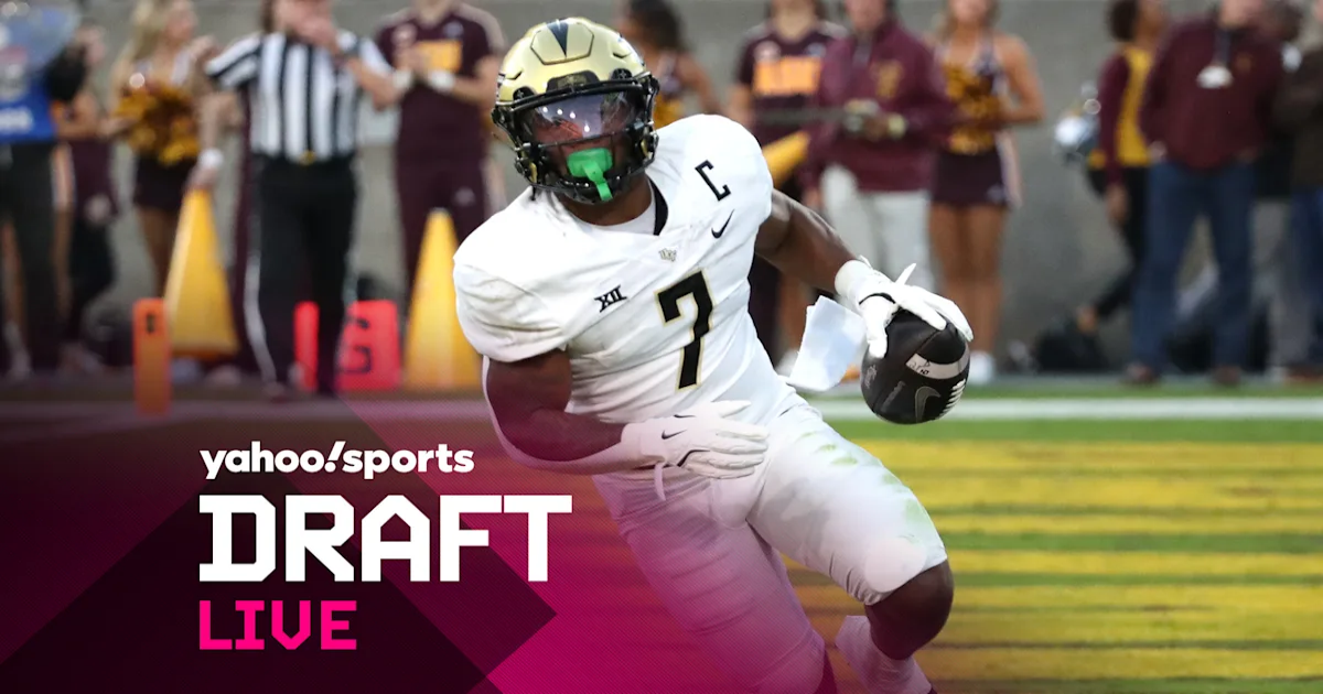 Yahoo Sports’ ‘Draft Live’ crew reacts to the Denver Broncos selecting UCF RB RJ Harvey in the second round of the draft.