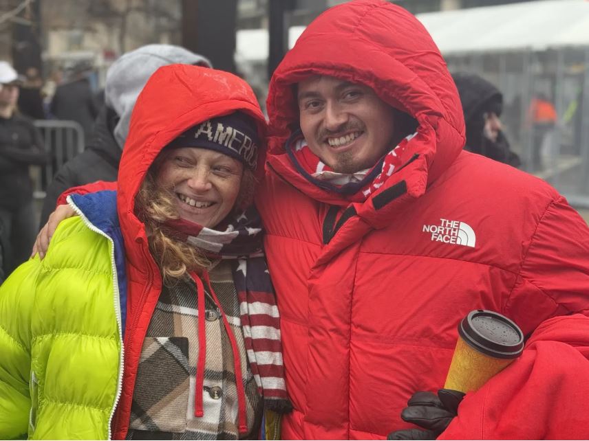 People gathering to celebrate the pre-inauguration rally were greeted with freezing temperatures, rain and even light snow.