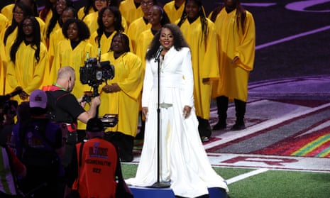 We just had a pretty stirring performance from Ledisi of Lift Every Voice and Sing. Given the NFL’s decision to remove the “END RACISM” logos from the end zones, it’s somewhat surprising the league kept on with the song – one of their big concessions to come out of Colin Kaepernick kneeling to bring awareness to social justice and the Black Lives Matter movement.