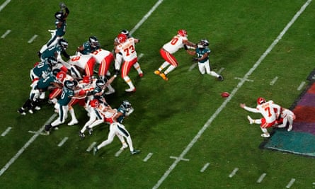 Harrison Butker kicked the winning field goal for the Chiefs the last time they faced the Eagles in the Super Bowl. Photograph: David J Phillip/AP