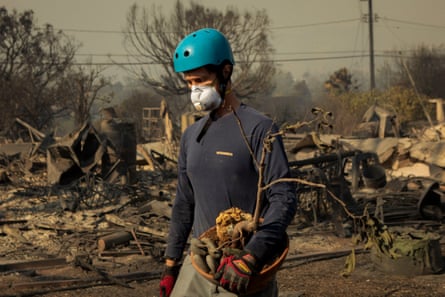 Daniel Clive McCallum amid the rubble in Pacific Palisades. Photograph: Gabrielle Canon/The Guardian