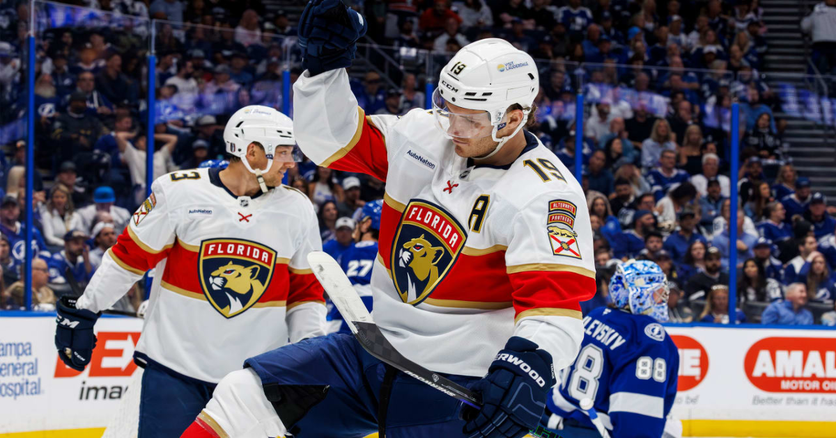 Tkachuk, who missed the final 25 games of the regular season with a lower-body injury sustained at the 4-Nations Face Off, scored two power-play goals for the Panthers to cap off a three-goal second period.