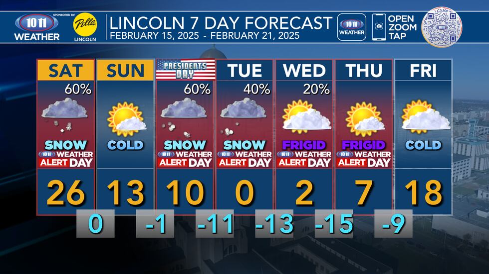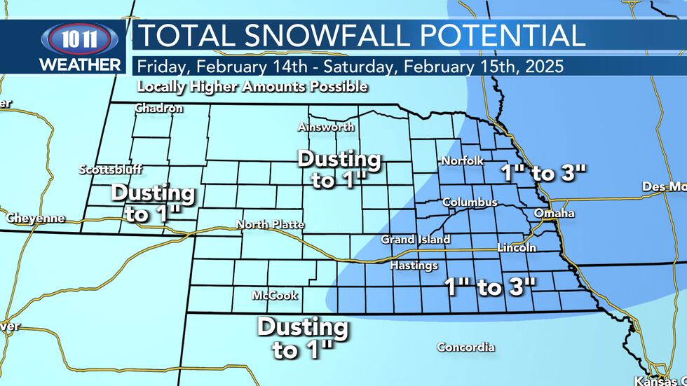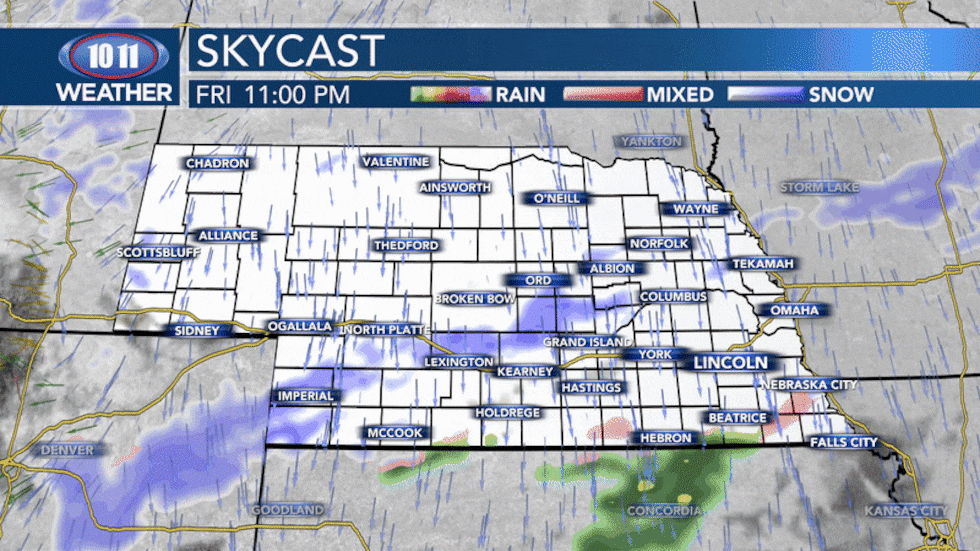 LINCOLN, Neb. (KOLN) – If you have any travel plans early on Saturday, you may want to consider waiting until the afternoon. Freezing rain accumulation is possible while snow and blowing snow are likely.