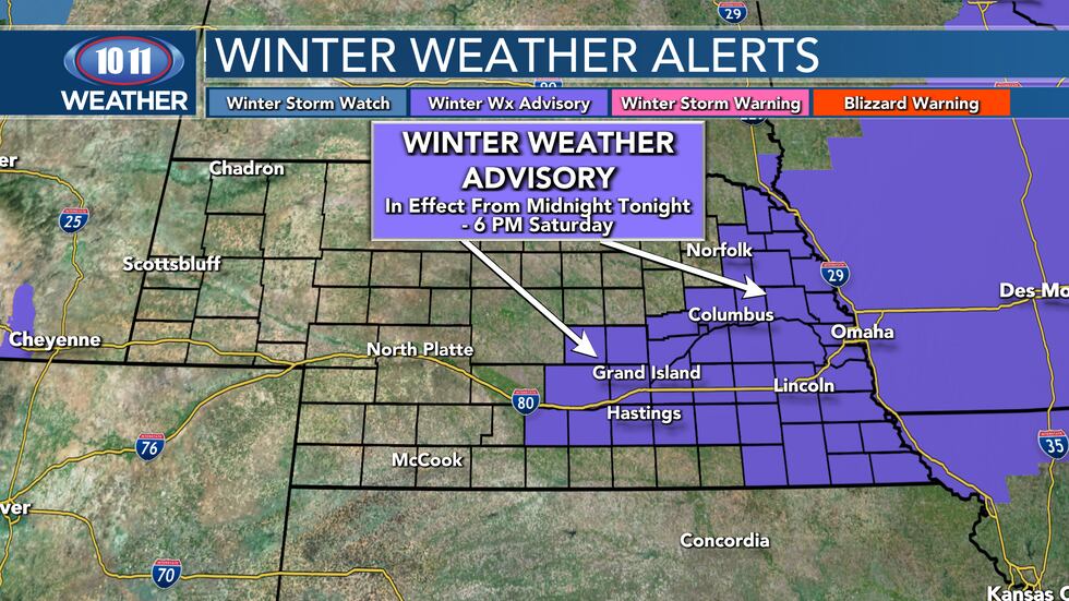 Winter weather advisories have already been issued for central and eastern Nebraska. Once again, ice, snow and blowing snow are all going to be concerns on roadways and sidewalks.