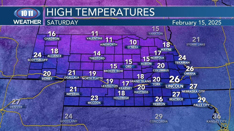 Teens and 20s early in the day with falling temperatures in the afternoon.(KOLN)